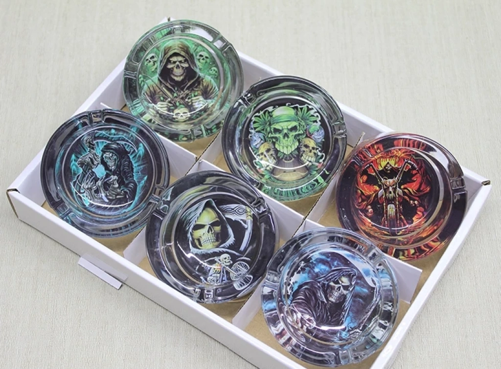 Metal Renkli Basmalı Küllük Yuvarlak Alk4528