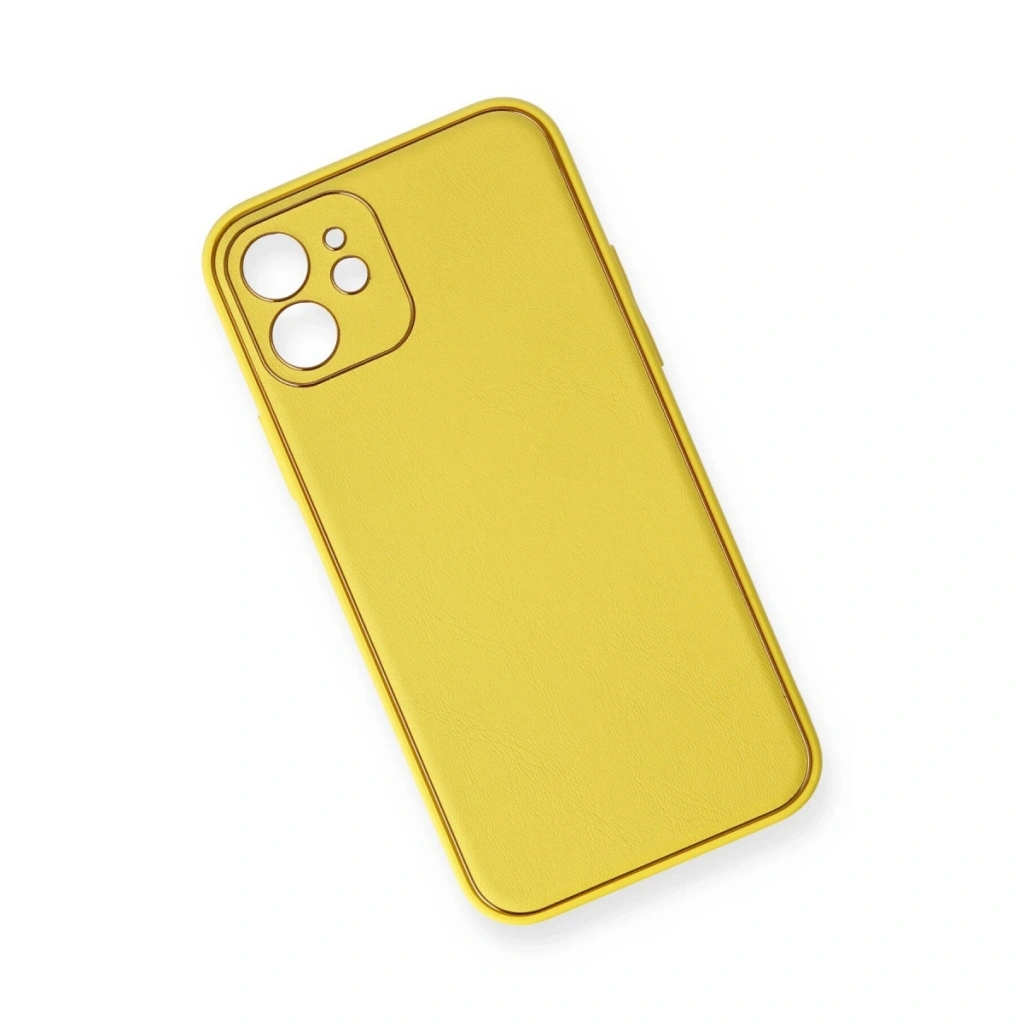 İphone 12 Kılıf Coco Deri Silikon Kapak - Sarı