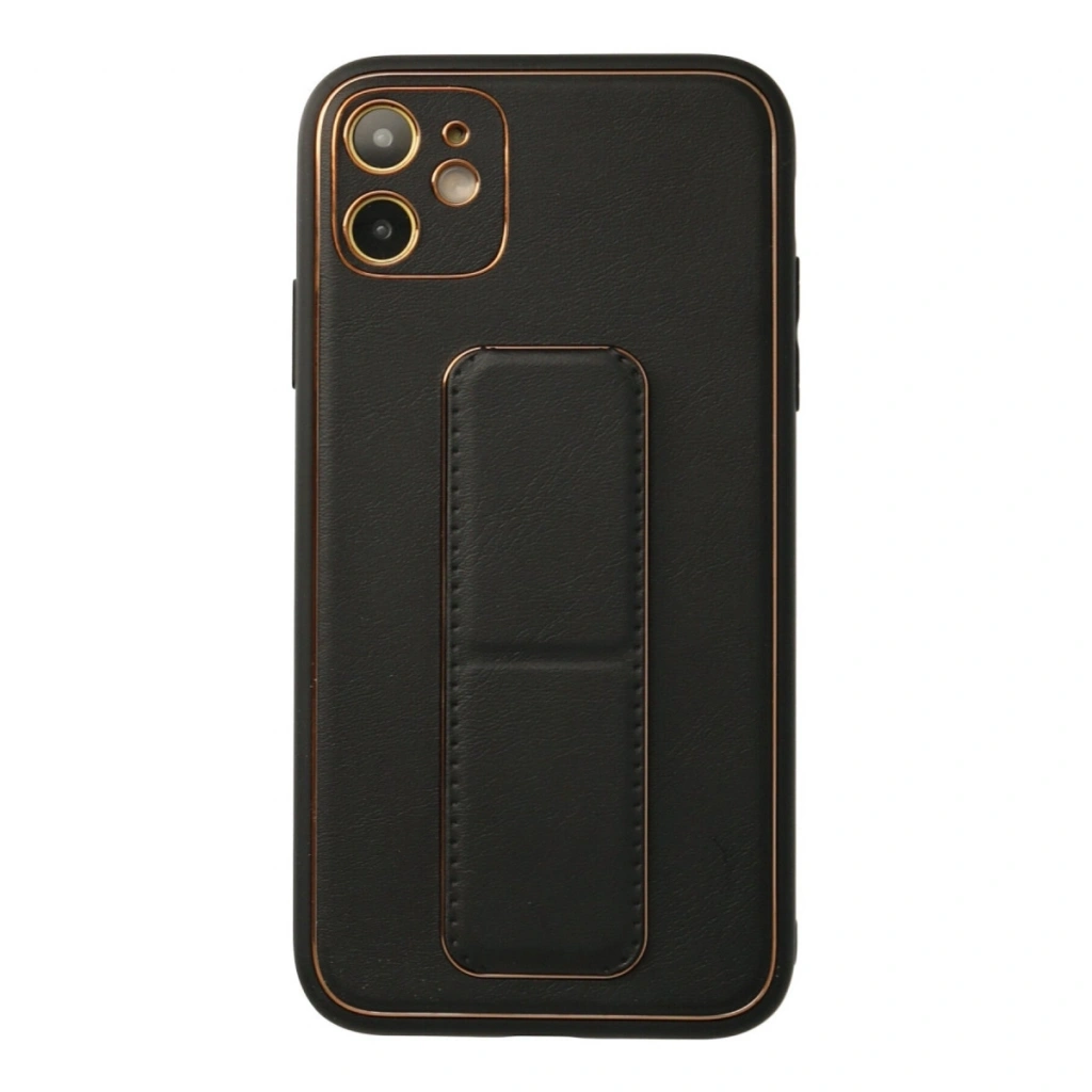 İphone 12 Kılıf Coco Deri Standlı Kapak - Siyah