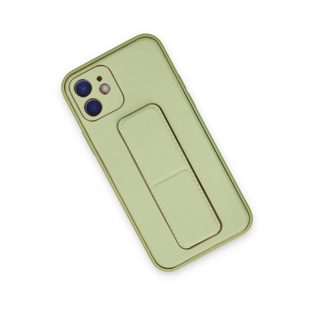 İphone 12 Kılıf Coco Deri Standlı Kapak - Su Yeşili