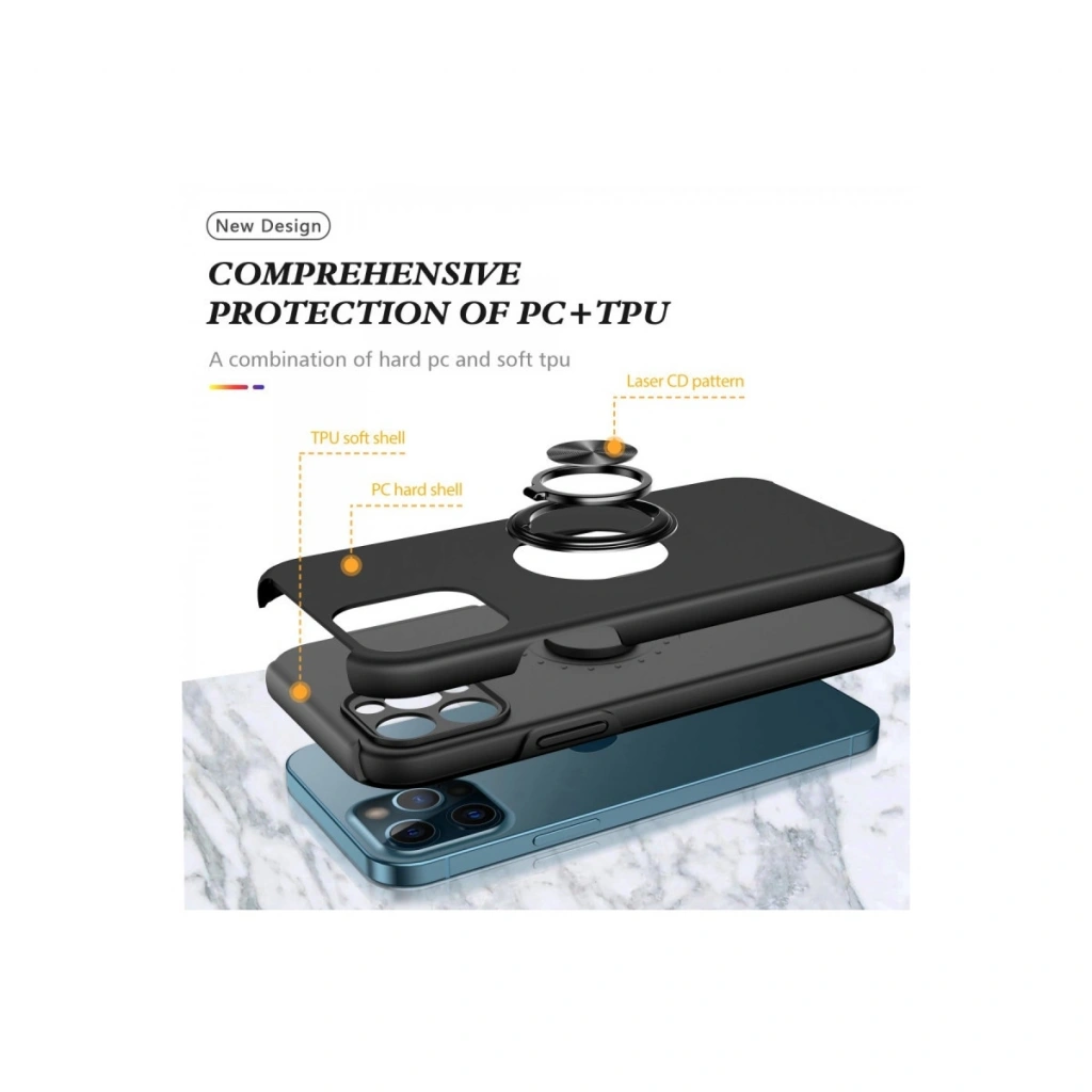 İphone 12 Pro Kılıf Elit Yüzüklü Kapak - Siyah