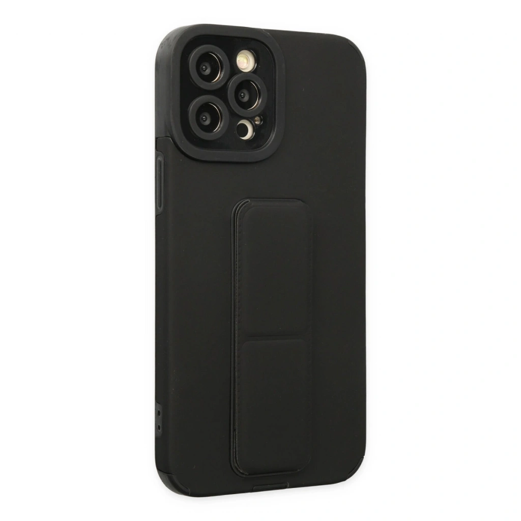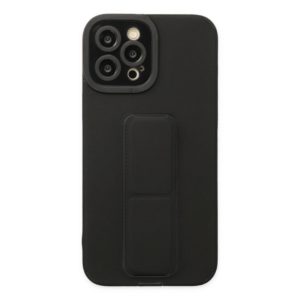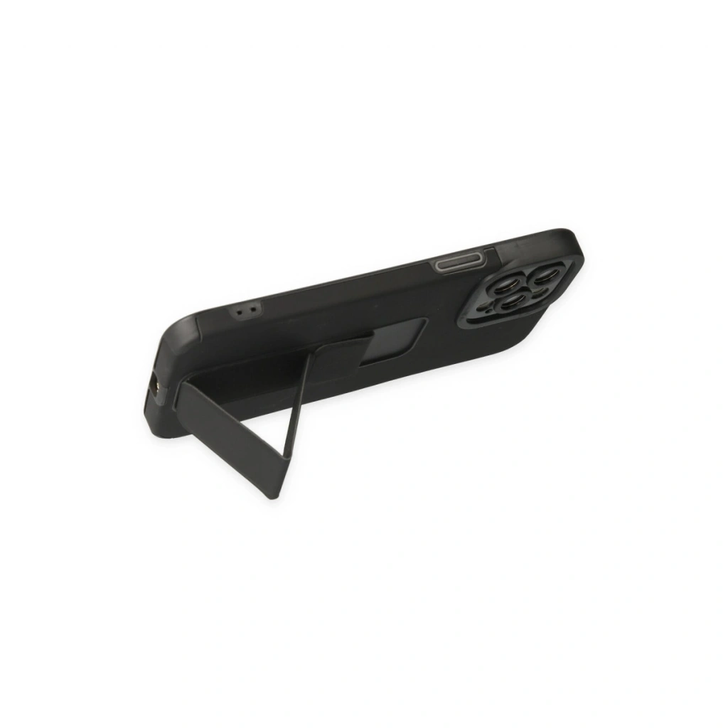 İphone 12 Pro Max Kılıf Mega Standlı Silikon - Siyah
