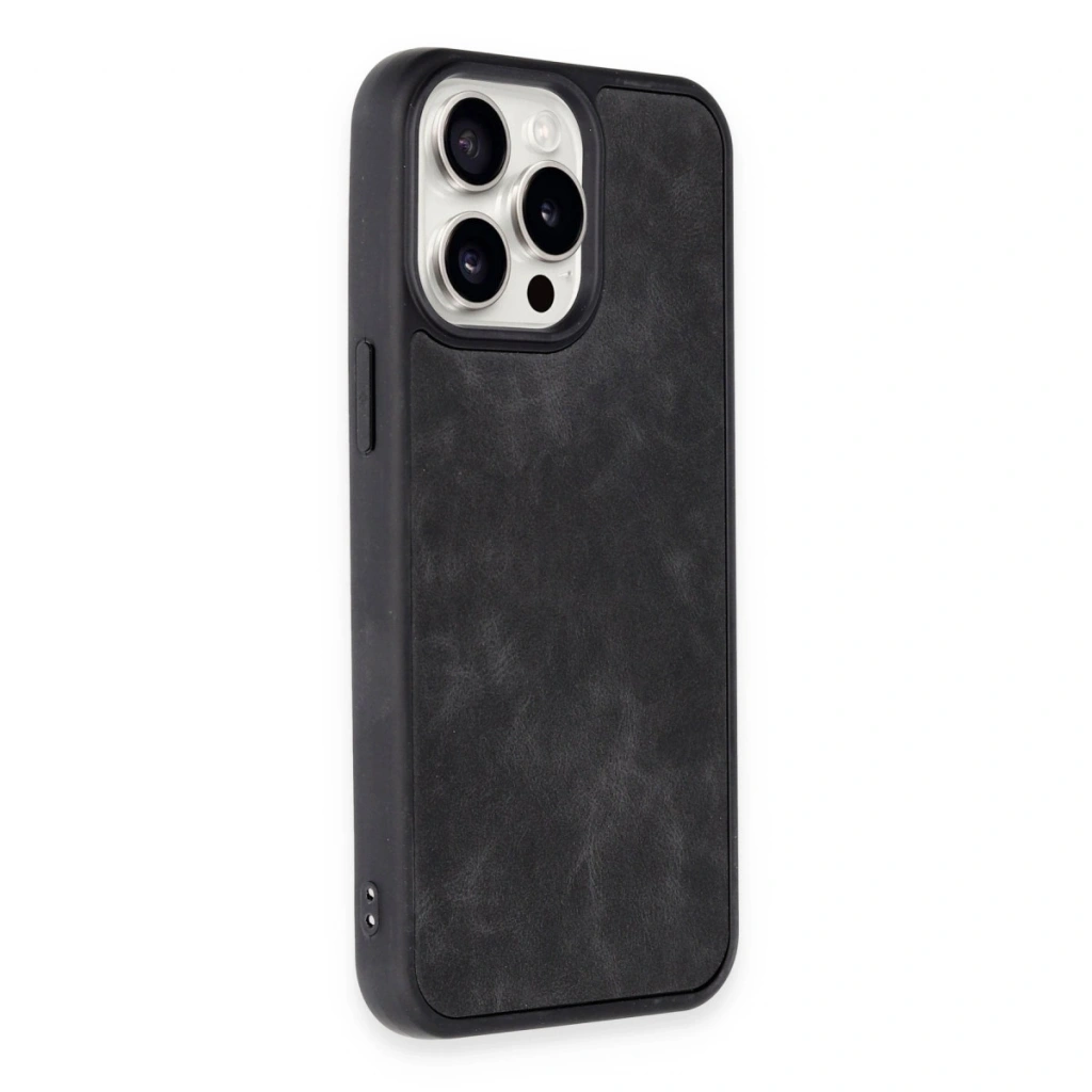 İphone 15 Pro Max Kılıf Aras Deri Kapak - Siyah