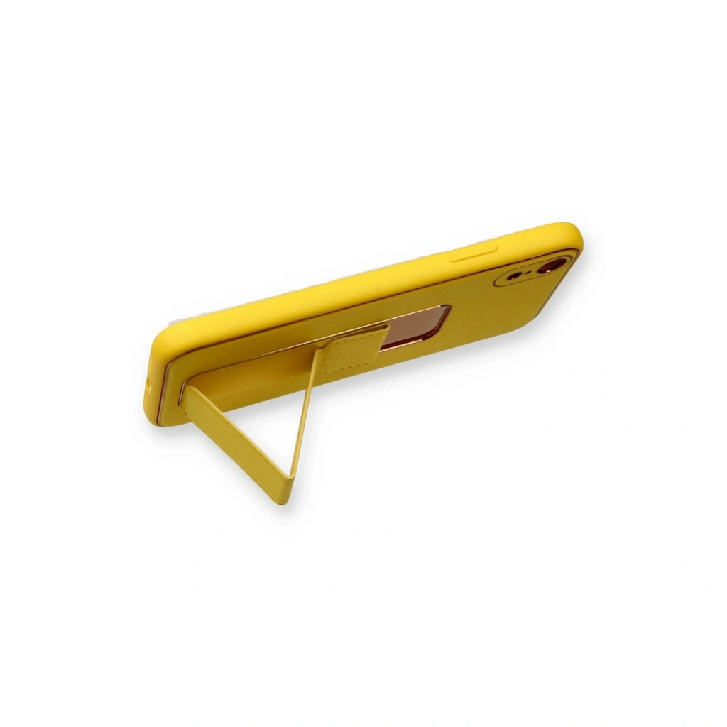 İphone Xr Kılıf Coco Deri Standlı Kapak - Sarı
