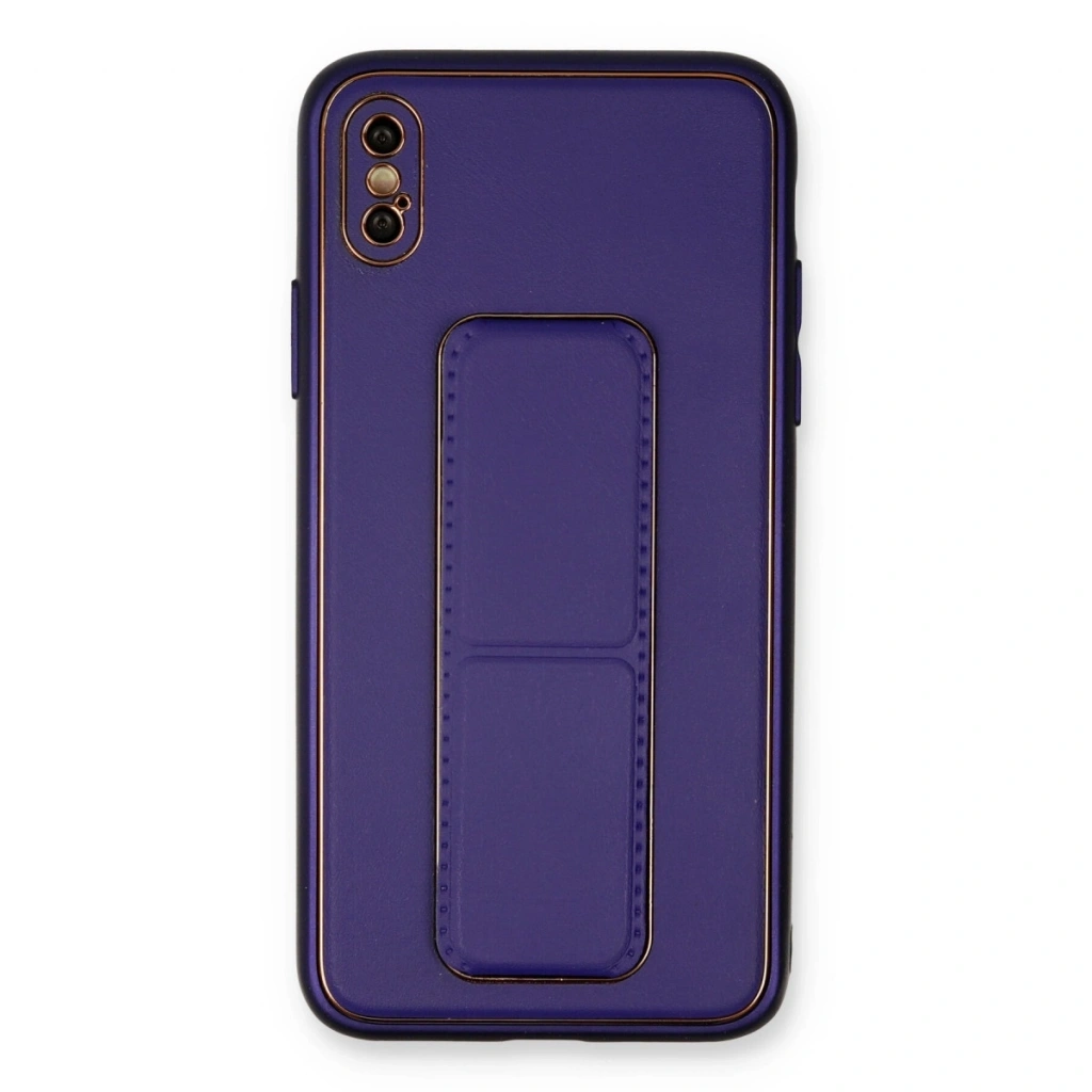 İphone Xs Max Kılıf Coco Deri Standlı Kapak - Mor