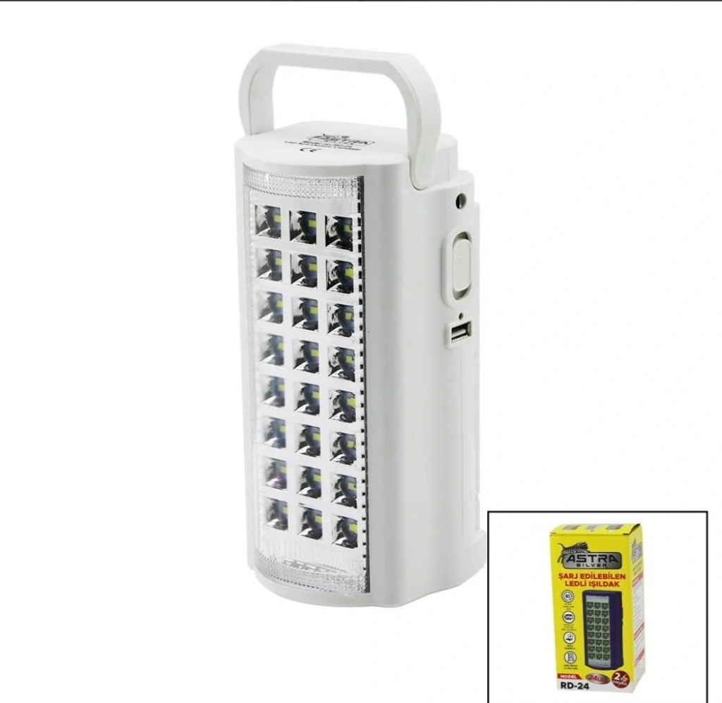 24 Ledli Şarjlı Fiş Şarjlı Powerbank Ledli Işıldak.